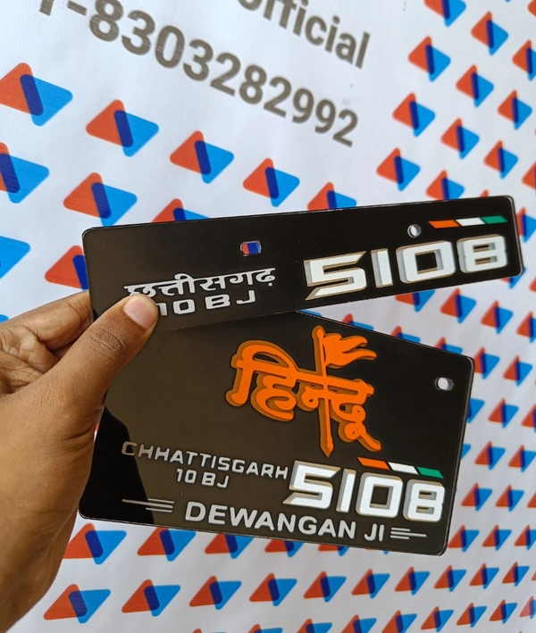 Hindu Radium 3d Number Plate ( Black Plate )