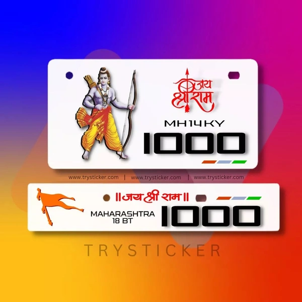 Premium 3d Jai Shree Ram Number Plate ( White )